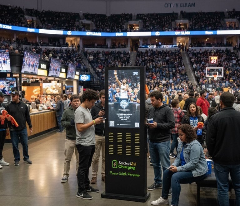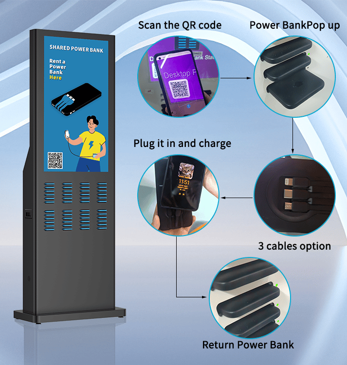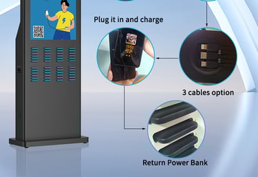 Portable power banks conveniently available at high-traffic venues for your devices.